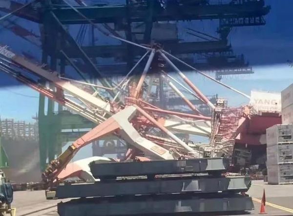 On the morning of June 3, at the Yangming Wharf No. 70 of Kaohsiung Port, the Durban container ship of OOCL collided with the cranes of Yangming Wharf, and two cranes collapsed. The incident caused damage to the vessel's container.